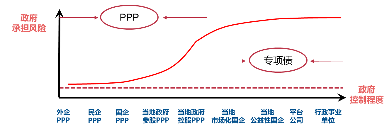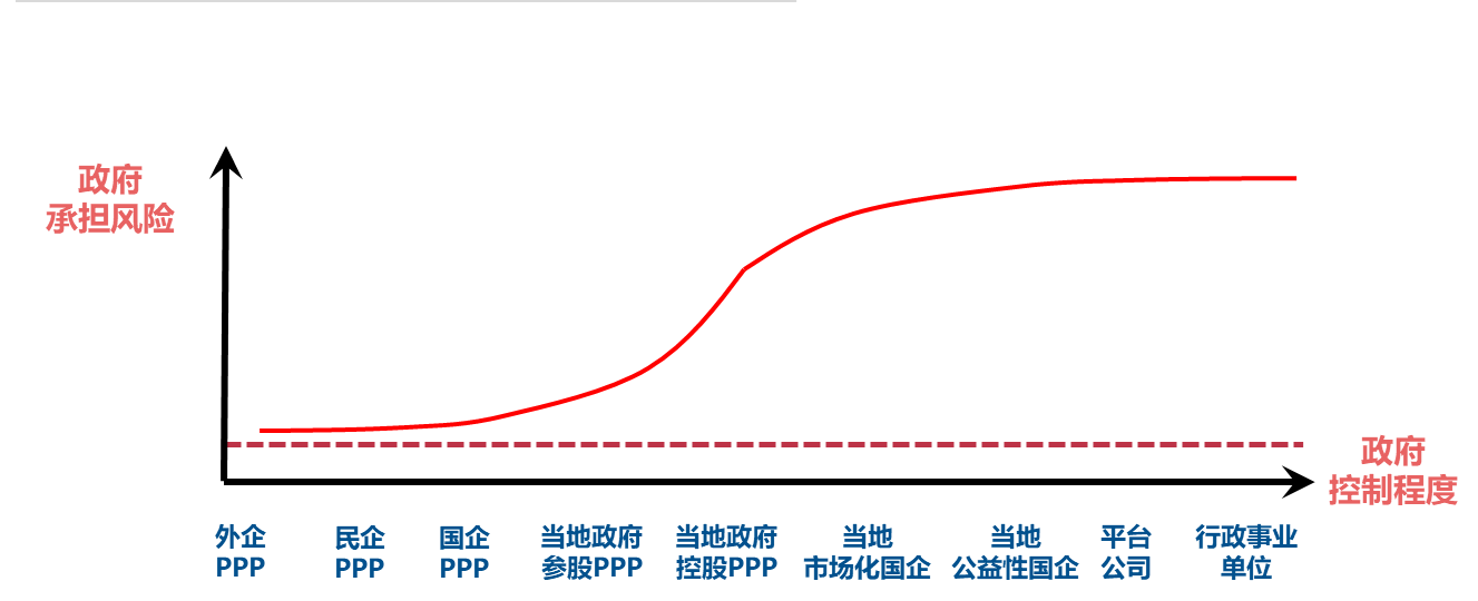 整體而言,地方國企主導的政府基礎設施投融資模式與PPP模式是涇渭分明的兩種模式,其本質(zhì)差異就在于地方政府對項目主體的控制程度和對項目風險的承擔程度。
